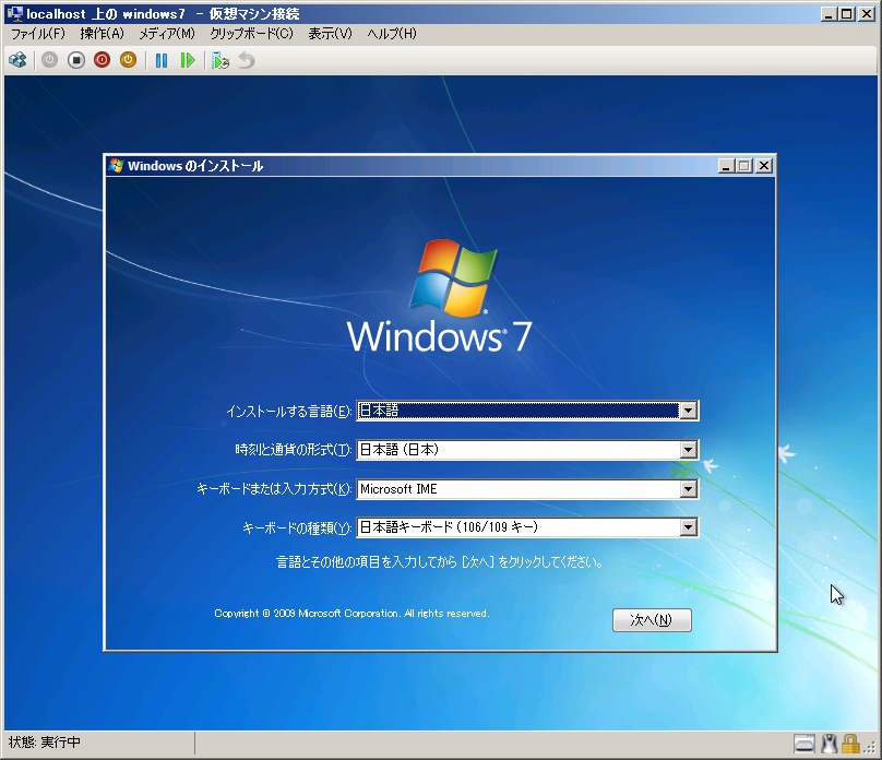 今回はWindows7をインストールするのにメモリを512MBとります。