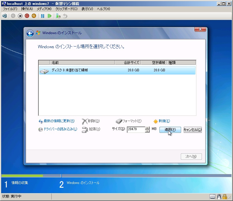 8.↑の画像で[適用]をクリックすると下の画像になり、[次へ]を