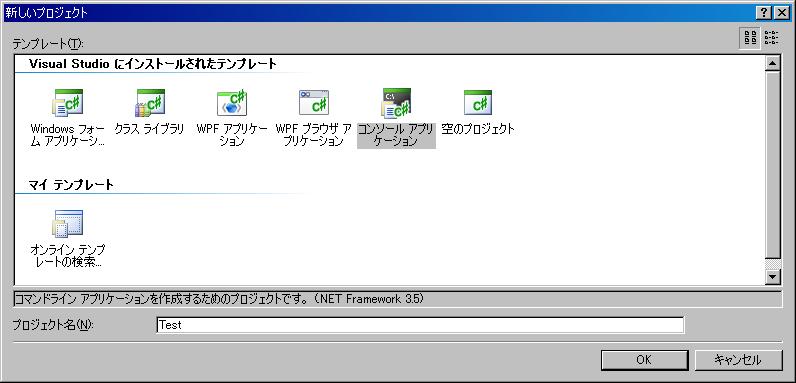 上記画面で[コンソール アプリケーション]を選択し、プロジェクト名を