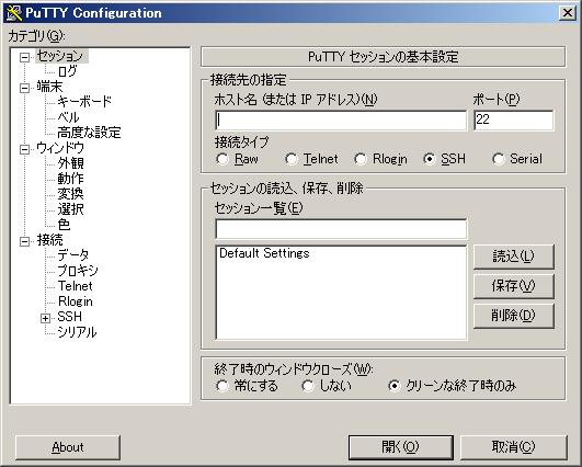左メニューの[カテゴリ] -> [SSH] -> [SSH] -> [トンネル]を開きます。